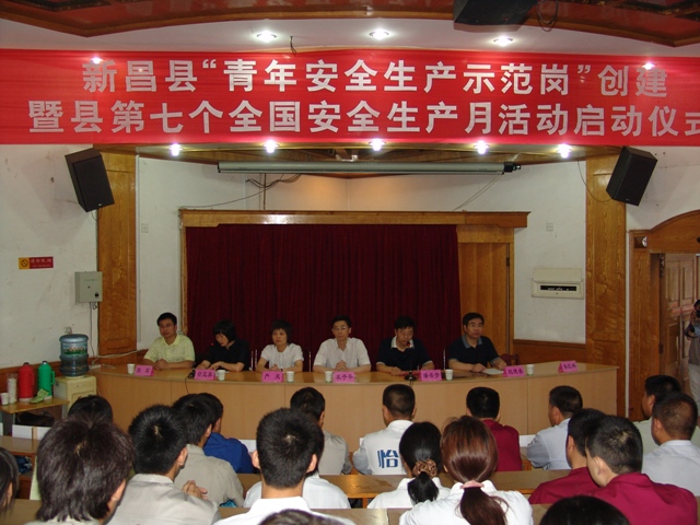 6月11日上午,團縣委與縣安監局聯合舉辦的“新昌縣‘青年安全生產示范崗’創建暨縣第七個全國安全生產月活動啟動儀式”在實驗中學一樓階梯教室舉行。我公司作為第一批爭創單位參加了活動啟動儀式。