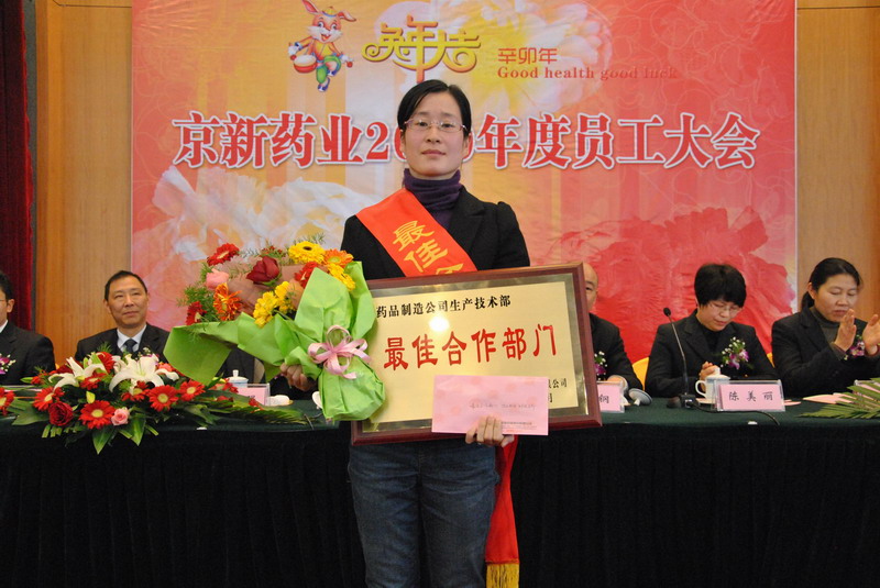 會上,公司總經理呂鋼作年度工作報告,報告分兩部分,回顧2010,展望2011年。回顧2010年工作,呂總指出,雖然面對醫改推進、基藥實施、省級招標實行這樣復雜多變的宏觀環境,但在公司全體干部員工的努力下,公司生產銷售穩步發展,研發工作扎實推進,管理工作成績顯著,企業文化建設工作對提高凝聚力、增強團隊合作意識起到了積極的促進作用,各項年度目標任務完成較好。呂總在肯定成績的同時,也客觀指出了2010年工作中存在的不足,希望全體干部員工在今后的工作中努力加以克服,以推進企業的快速發展。展望2011,呂總根據公司的總體目標,向各分子公司提出了新的目標。講話中,呂總強調指出,京新藥業的每一名干部員工都要承擔起自己的責任,立足本職,力求發展,團結一致,求真務實,搶抓新機遇,增創新優勢,再創新輝煌!