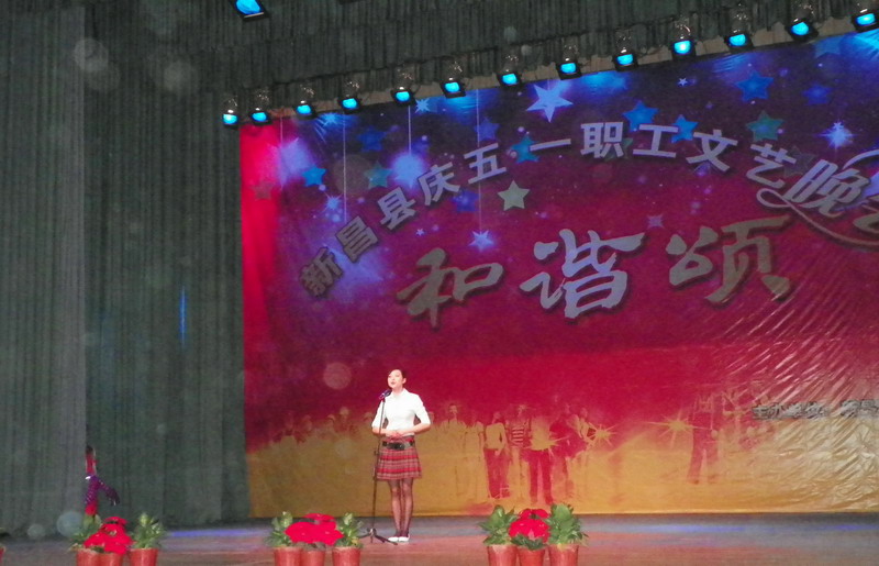 4月28日晚7點,由縣總工會舉辦的新昌縣“和諧頌”慶五一職工文藝晚會暨表彰大會在縣文化中心隆重舉行。縣領(lǐng)導(dǎo)潘岳夢、嚴(yán)鋼出席晚會,包括我公司在內(nèi)的縣內(nèi)十多個大型企業(yè)參加了文藝演出,精彩的演出為勞動者的節(jié)日帶來了歡樂。我公司選送的節(jié)目詩朗誦《走進(jìn)京新》,由研究一所王艷麗表演,她以新進(jìn)職工的角度抒發(fā)了對公司的熱愛之情。