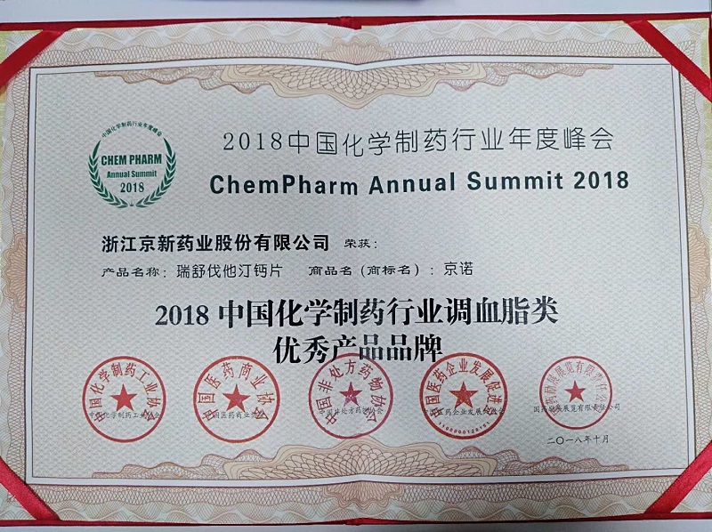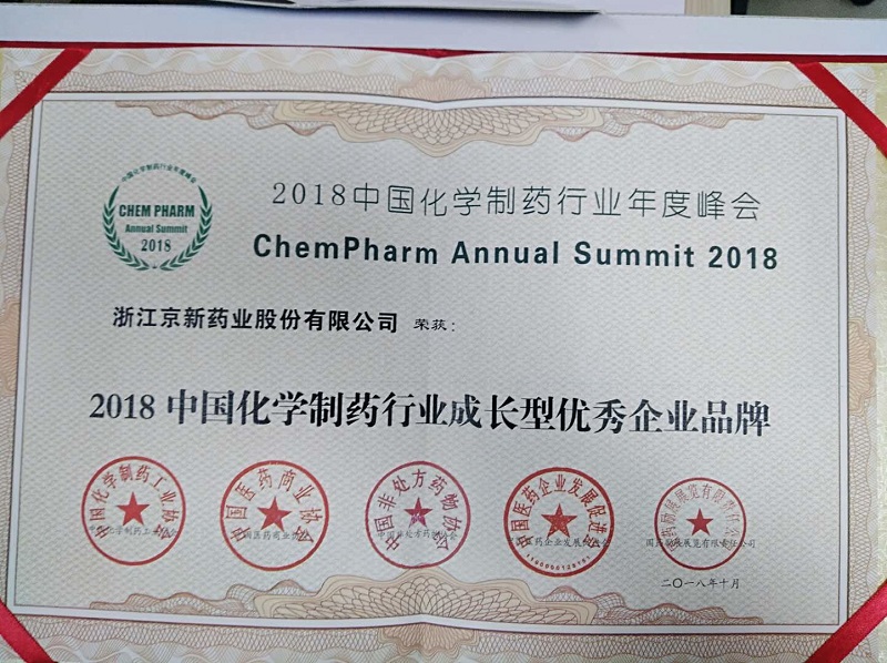 10月16日,以“質量?誠信?品牌”為主題的2018中國化學制藥行業年度峰會在南京召開,在此次峰會上京新藥業榮獲“2018中國化學制藥行業工業企業綜合實力百強 39名”、“2018中國化學制藥行業成長型優秀企業品牌”、“2018中國化學制藥行業制劑出口型優秀企業品牌”、“瑞舒伐他汀鈣片獲2018中國化學制藥行業調血脂類優秀產品品牌”多項榮譽。