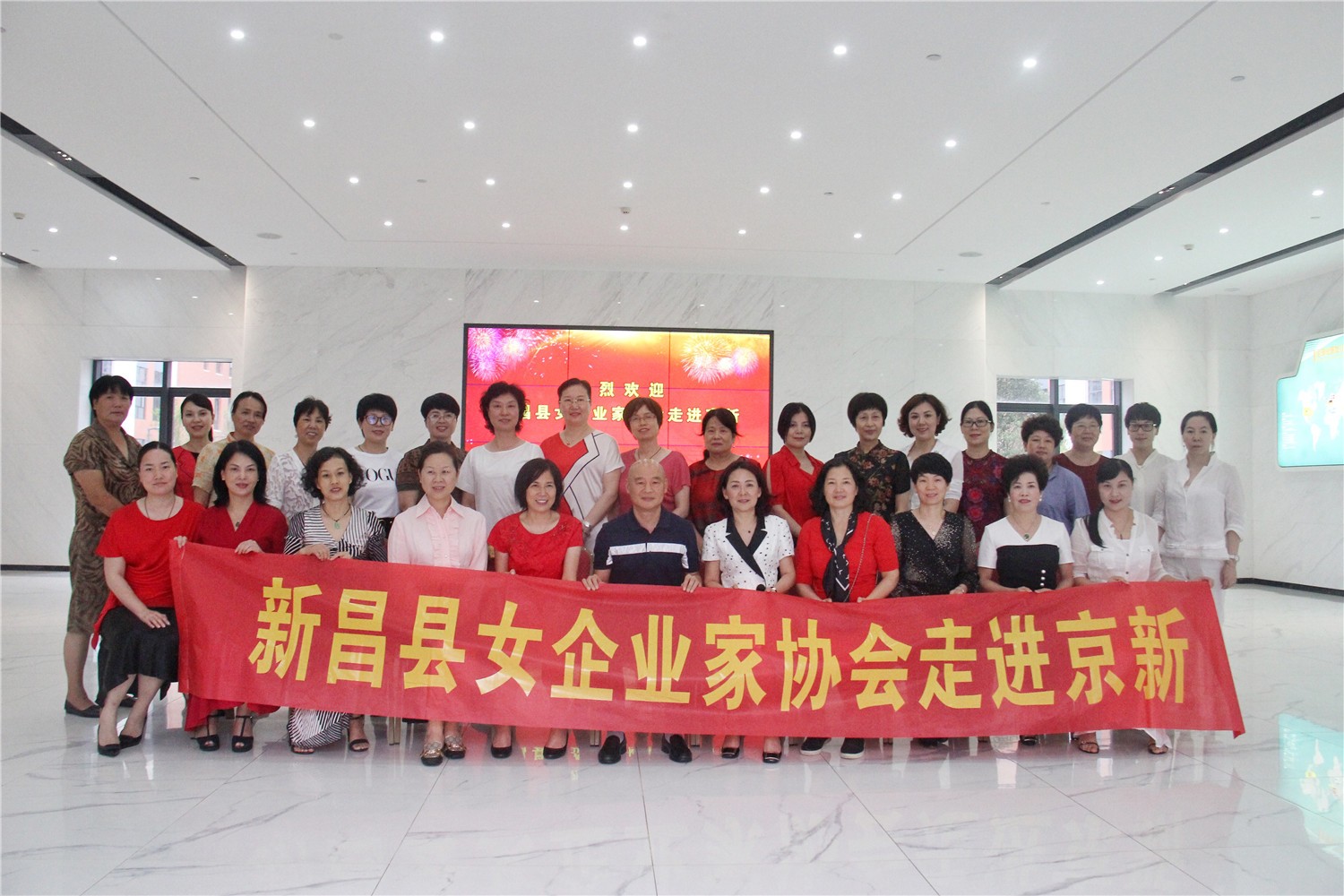 8月9日,新昌縣女企業家協會副會長、浙江五洲新春集團控股有限公司執行總裁俞越蕾,協會副會長、新昌石城大酒店總經理梁驪,協會副會長、中寶實業控股股份有限公司總裁吳楠,協會秘書長、新昌農商銀行副行長楊琳攜新昌女企業家協會成員30余人走進京新。公司董事長呂鋼、公司黨委副書記孔慶豐熱情接待。
